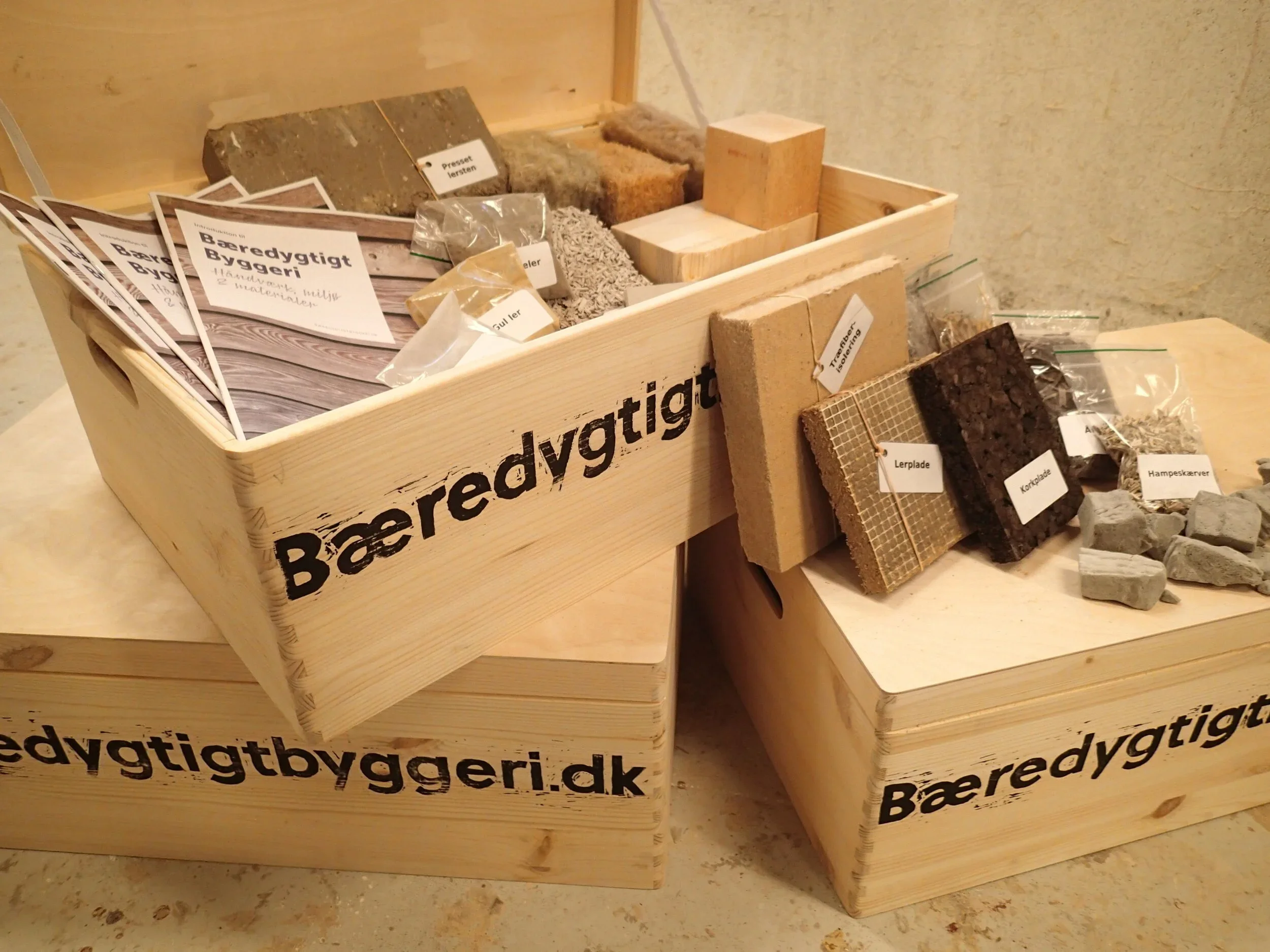 Materialekassen her kan indgå som et led i undervisningen og tages frem, når alternative byggematerialer skal præsenteres for klassen. I kassen indgår ligeledes et klassesæt af det trykte hæfte der introducerer bæredygtigt byggeri. Dette kan også bestilles separat længere nede på siden.